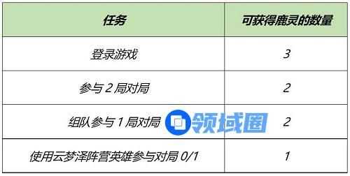 参与鹿灵拼图活动,完成每日任务收集鹿灵可点亮拼图,每次点亮拼图可获得鹿灵拼图礼包*1,点亮所有拼图可获得自然之灵回城特效(永久),多余的鹿灵可用于抽奖(每次抽奖消耗鹿灵*4),活动结束后所有的鹿灵和未领取的奖励都将清空,召唤师们记得及时使用、领取哦~