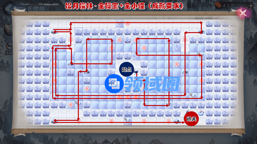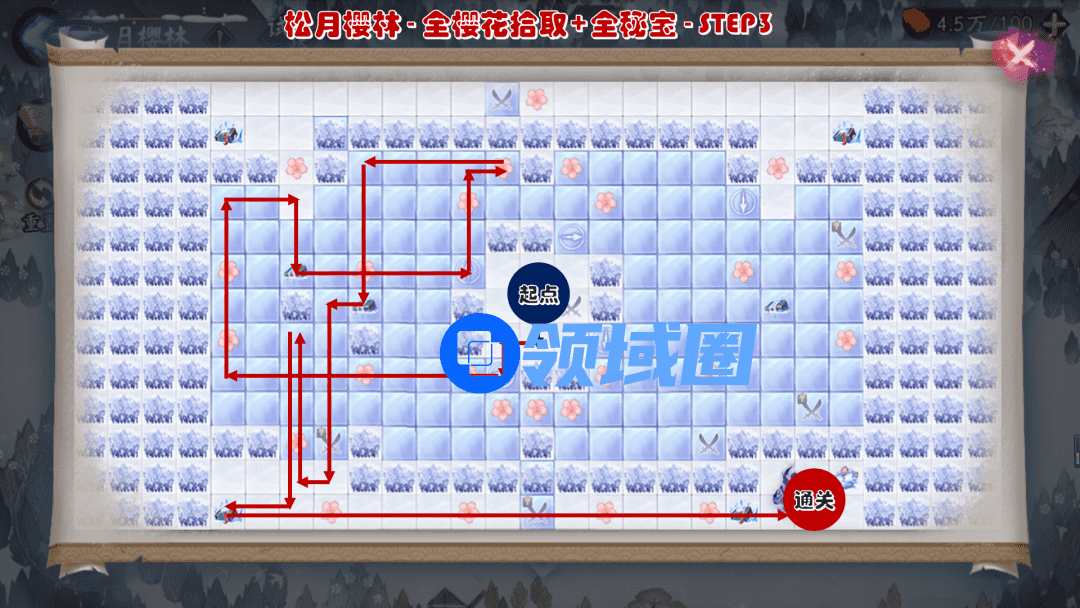 每张樱林分为“限定格内通关”、“特殊成就”和“全樱花拾取”路线图,这三者都与「成就」有关.