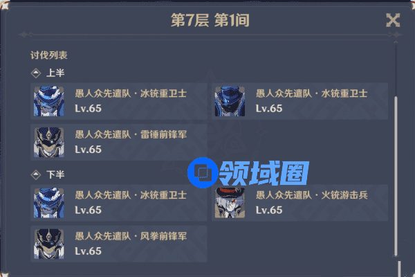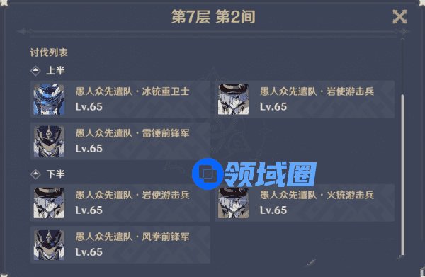 第7层刚打到的兄弟们,几乎会比较崩溃,就不要给这种怪爆发元素的机会,不然下面那厚厚的护盾,有你感受的,不用对应克制的元素打的话,慢的一批,建议再开始的时候直接爆发击杀,辅助最好都是给队伍加元素能量的圣遗物套装,让主C和副C能快速的爆发,不然,能过,但不会满星,很难受就是了,还有可能出现暴毙的情况.