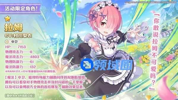 1. 活动限定角色「拉姆」仅可在活动期间内通过完成指定条件的任务后解锁。