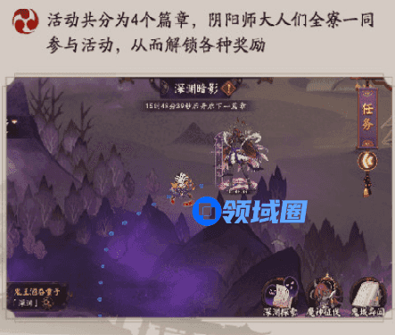 活动分为'深渊探索'、'鬼域讨伐军'、'魔神征伐'、'阴阳寮排行'4个主要玩法。