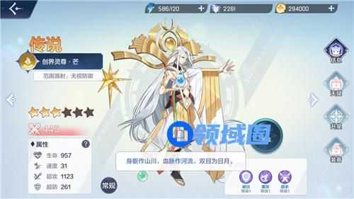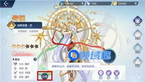 首先只有部分传说精灵拥有两张动态立绘,比如说创界灵尊,点击上图所示的【立绘】按钮,就可以切换成常规立绘。尽管内测阶段皮肤功能没有实装,但是公测后的皮肤功能位置,必然在立绘切换按钮旁边。