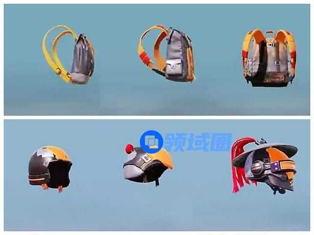 再看一下背包和头盔皮肤,实话说,这次的背包皮肤一点亮点也没有,只是配色符合整体风格,明显就是来凑数的。虽然背包皮肤不怎么样,却非常不错,可以看到一级皮肤的建模并没有太大改变,只是更改了一下配色,二级头也是同样如此,不过在头盔上增加了一个红色的珠子,而最具亮点的则是三级头,可以看到这款三级头皮肤,在初始的建模中,增加了一个类似斗笠的造型,和人物皮肤套装的斗笠非常相似,在后面也同样增加了一个红色丝带一样的装饰,起来非常好看,也非常特别!很多玩家也表示,就算其他的皮肤不要也要这款三级头皮肤!