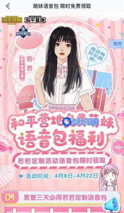 玩家们在活动期间前往和平营地参与活动即可获得主播若若的语音包。累计登录三天就可以免费领取到了。
