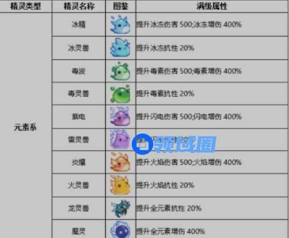 元素系精灵能提供元素有关的增益,包括元素伤害、元素抗性等。