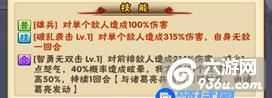 组合技能 智勇无双击Lv.1对前排敌人造成214%伤害,减少1点怒气,40%概率造成眩晕,我方随机1个武将伤害提高50%,持续1回合(与诸葛亮共同出战可触发,由诸葛亮发动)