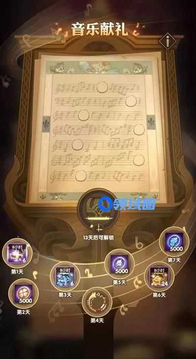 2、除每日登录奖励外,最终奖励宝箱将于活动第14天时解锁,玩家可以通过点亮音符彩蛋来提前解锁奖励宝箱。若玩家将7个音符彩蛋全部点亮,则最快可在第7天领取奖励宝箱。