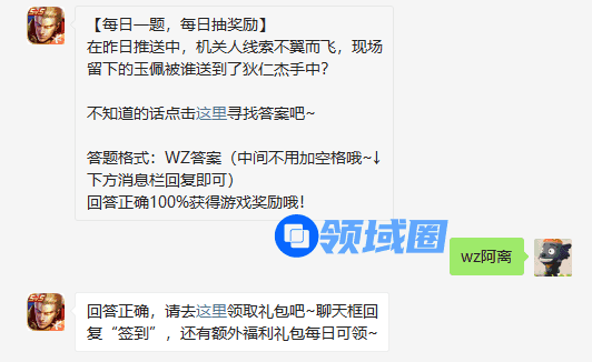 【每日一题,每日抽奖励】在昨日推送中,机关人线索不翼而飞,现场留下的玉佩被谁送到了狄仁杰手中?不知道的话点击这里寻找答案吧~答题格式:WZ答案(中间不用加空格哦~↓下方消息栏回复即可)回答正确100%获得游戏奖励哦!