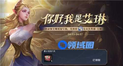 (1)4月3日至4月7日的活动期间,登录游戏即可获取艾琳祝福宝箱,有一-定几率获取艾琳的信物。
