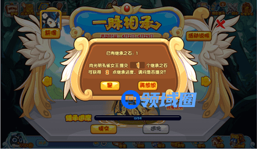 >>>其后和孔雀进行战斗,胜利可获得“继承之石”,每天有三次挑战机会,第一次手动,VIP5有扫荡特权;