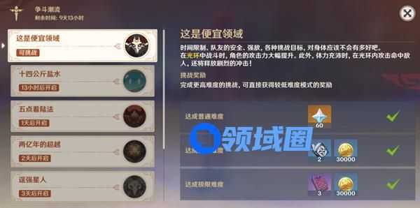 (4)活动期间,世界等级调整不会影响本玩法难度。也就是说无法通过降低世界等级来降低游戏难度,但也不用担心升级世界等级令难度增加。