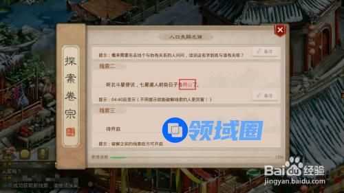 根据提示最后一个失踪的人是七星道人,直接出官府门口,左走来到塔旁边找到北斗星使 。
