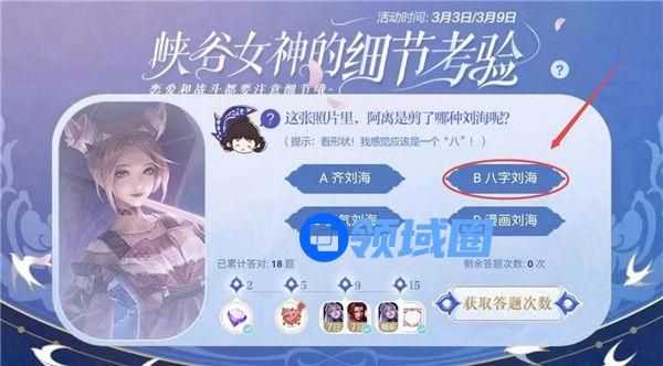 这张照片里,阿离是剪了哪种刘海呢?(提示:看形状!我感觉应该是一个“八”!)这是王者荣耀峡谷女神的细节考验第19题,游戏宝小编为您带来这张照片里阿离是剪了哪种刘海呢答案。