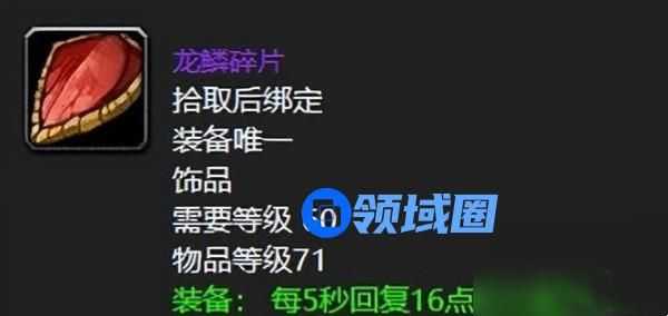 玩家需要把等级提升到60级才能装备该物品,没五秒回复16点血量。