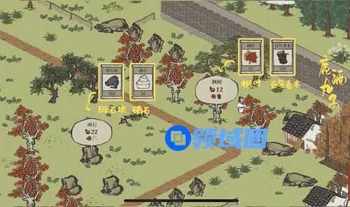 靠近围墙这一片都可以找到枫叶,需要消耗体力收集。