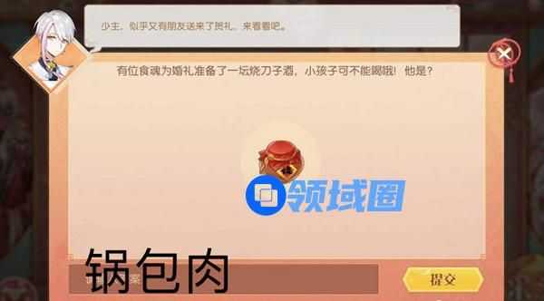 题目:有位食魂为婚礼准备了一坛烧刀子酒,小孩子可不能喝哦!他是?