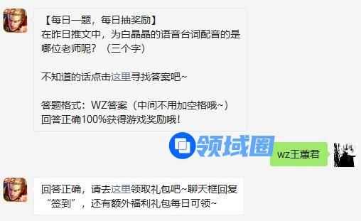 在昨日推文中,为白晶晶的语音台词配音的是哪位老师呢?