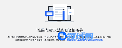 该问卷用于“谁是内鬼”玩法内测资格招募,为确保内测参与玩家对于玩法具备一定了解,需回答少量玩法基础问题,答题结果将影响您是否获得内测资格,请认真作答,感谢配合!(游戏等级不满30级将无法获得内测资格)