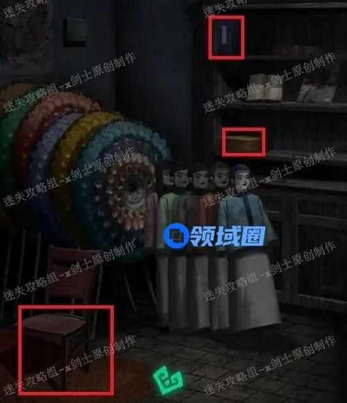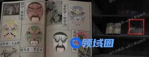 进入纸人店的时候,可以查看凳子,凳子下面掀开毯子可以看到机关,点击后面的桌子上面的书架可以在最上层得到一本蓝色的模型书,最下面一层可以得到一沓纸钱。102