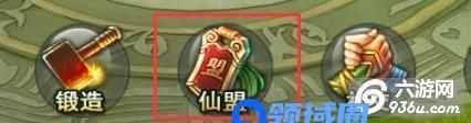 先点击游戏主界面左上方的角色头像,这时游戏主界面下方会弹出菜单栏,再点击菜单栏中的“仙盟”,在仙盟大厅界面,点击“仙域守护”图标进入。