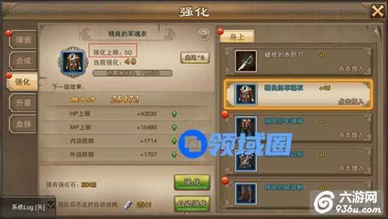 选择想要强化的装备,点击强化按钮就可成功强化了,也可使用自动强化按钮自动强化装备,使用自动强化将自动强化装备到到顶级或者消耗掉所有的强化石后,强化结束,可以手动停止自动强化。
