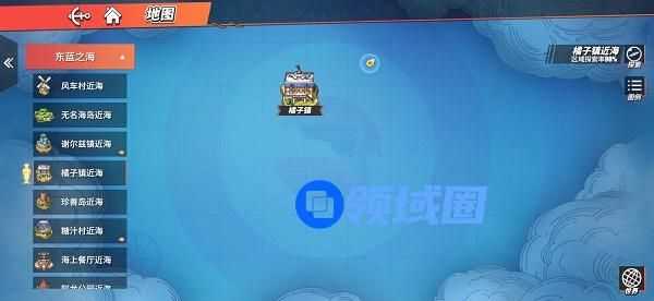 1、如下图所示,将地图打开,点击橘子镇近海,然后在右上方,乘船过去;