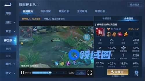 加入鹰眼护卫队的条件,就是信誉等级7星且信誉积分=100分,并且通过入队模拟裁决测试。等后续开放护卫队入口,满足条件的难度并不算高。鹰眼队员的日裁决次数,只有8次,每日都花点时间来裁决,并且保证正确率,就能早日成为鹰眼副尉。