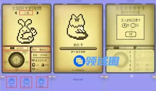 在电子宠物设定完成前,玩家可以对宠物的名字进行替换,也可以通过“换一只”来替换其他宠物,每个宠物的属性和系别都不一样,而且还有各自的爱好和喜欢的礼物。