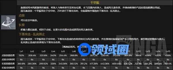似乎施放技能后和下落攻击造成的风场都有聚怪效果,下落攻击可以转换为风伤,整体倍率是挺不错的(岂不是被迫要点普攻等级了?)