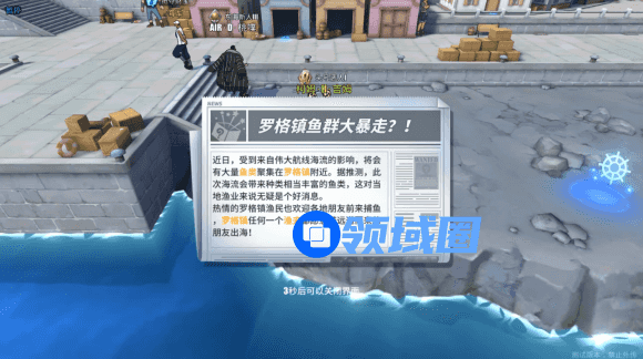 在生活区下方的鱼店老板要科普下罗格镇的特殊存在,那就是有机会获得四海的稀有鱼种,叫你先去右边的码头问问渔夫怎么看。