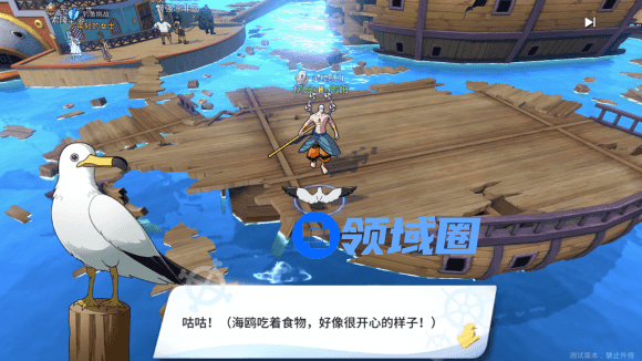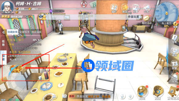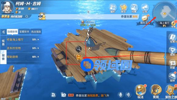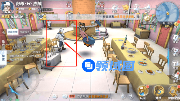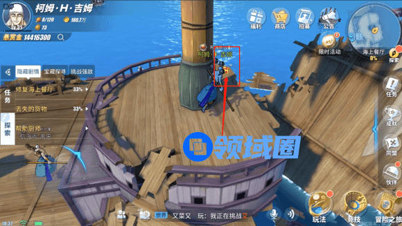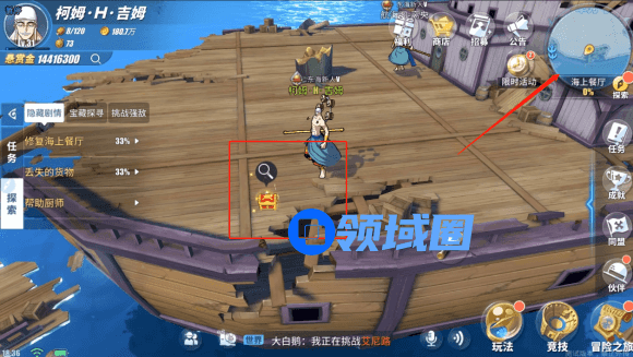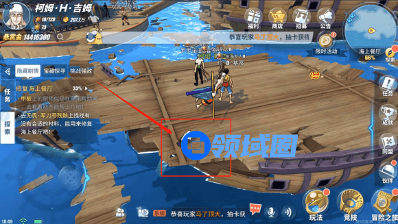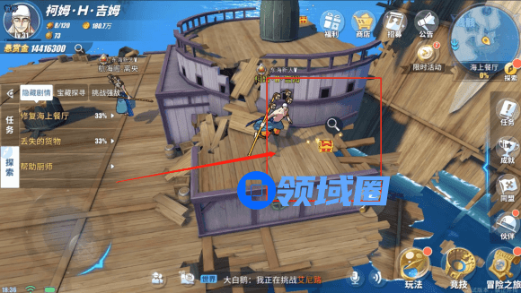 这厨师碎碎念海上餐厅被破坏的很严重,需要去找修船的材料,就在旁边那个柱子过去找。