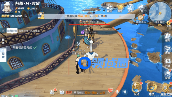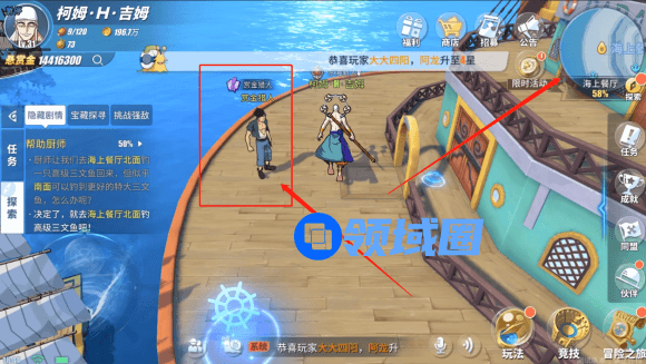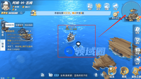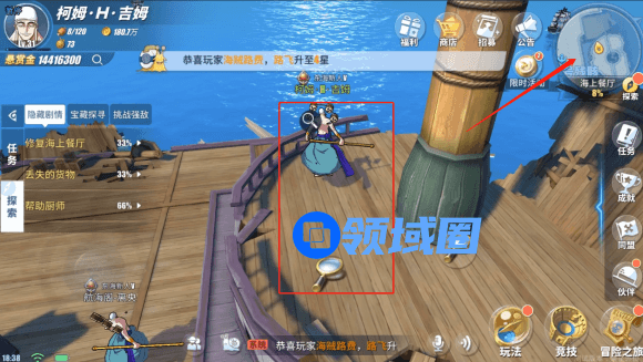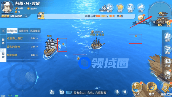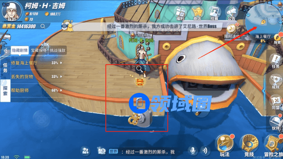来到北面海域就能看到一艘不太一样的船,还好实力够强,要不然就被坑了一波。连续战斗两次后,返回餐厅找一个小姐姐帮忙拼图就完成了该任务。