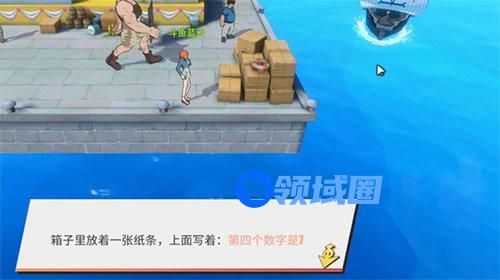 右下角线索位置:在地图右边这个区域,然后在货物旁边,可以看到宝箱,打开之后得到第四个数字为7