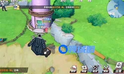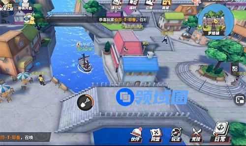 玩家来到这个罗格镇近海的区域,然后在如图所示的地方,就是这个桥的上面,需要你乘船才可以来到这个地方。