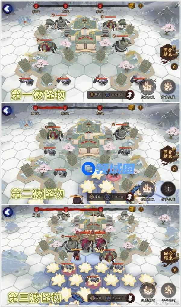提前放置莲花地雷,下一波怪物出来直接踩地雷就死了。