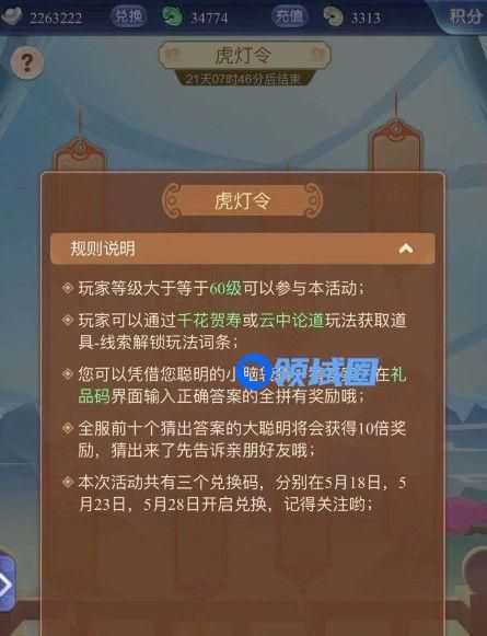 梦幻西游网页版虎灯令答案大全攻略