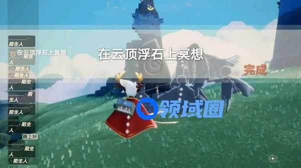 完成方法:在云野一图右侧隐藏图里的浮岛石塔旁冥想