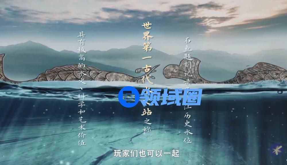 不过从后续的内容中我们也可以找到一些端倪,上一个海报中的主角是一条鱼,以及非王者荣耀英雄的一个人物,但是转个画面就是上边这张图,上边的内容是“具有极高的水文、科学和艺术价值,世界第一古代水文站之称,石鱼题刻记录了长江历史水位”。