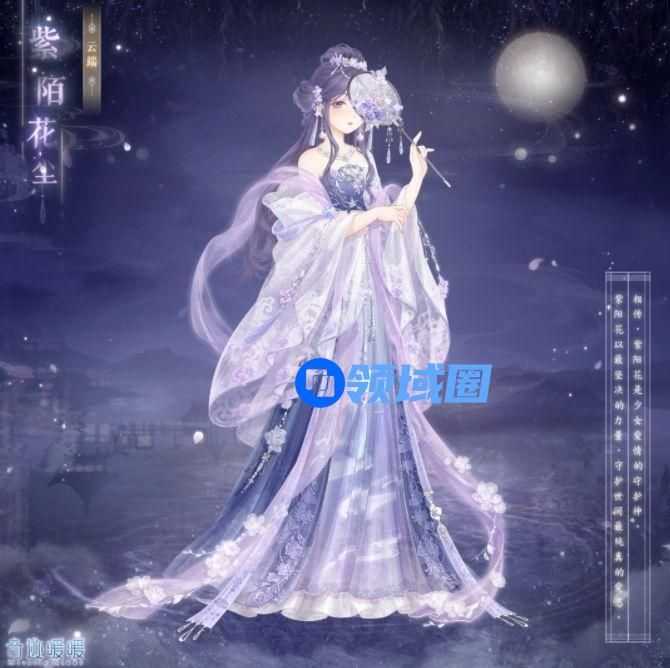 【紫陌花尘】含正常姿势与特殊姿势,特殊姿势外套“紫陌花尘”。海报展示妆容为“娇艳欲滴”。