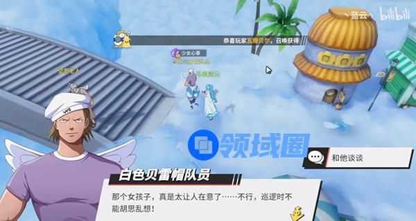 去到沙滩的凉亭处,然后回答问题,答案分别是云之川、红色、尾巴是球状的、体积更大了、天空之主,然后完成任务。