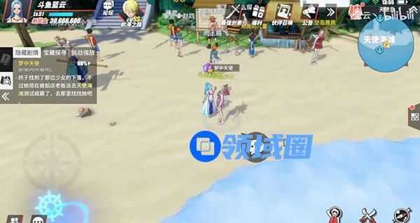 然后来到沙滩边上的凉亭位置,和顽皮的儿童对话,这样第一阶段的宝藏探寻任务就完成了,后续的任务需要玩家达到41级,并完成前置任务才能开启,如果你以满足条件可以继续往下看;