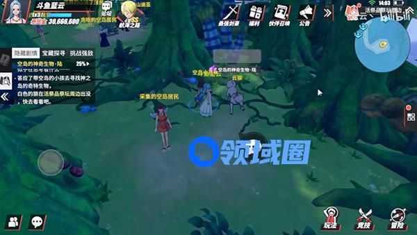 14、试炼之地的宝物:来到估计外围找到“开心的空岛居民”;