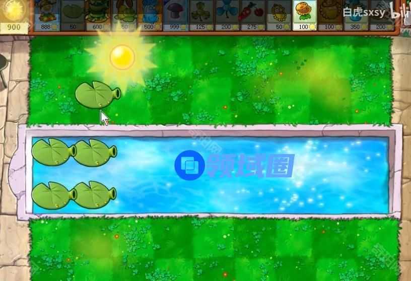 1、这一关现在水池里面放上豌豆睡莲,这一关植物都是成排放的,需要先在水池放好踏板,然后才好放其他的。
