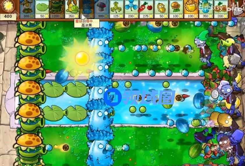 3、最前面放一排高冰果阻拦僵尸前进的道路。