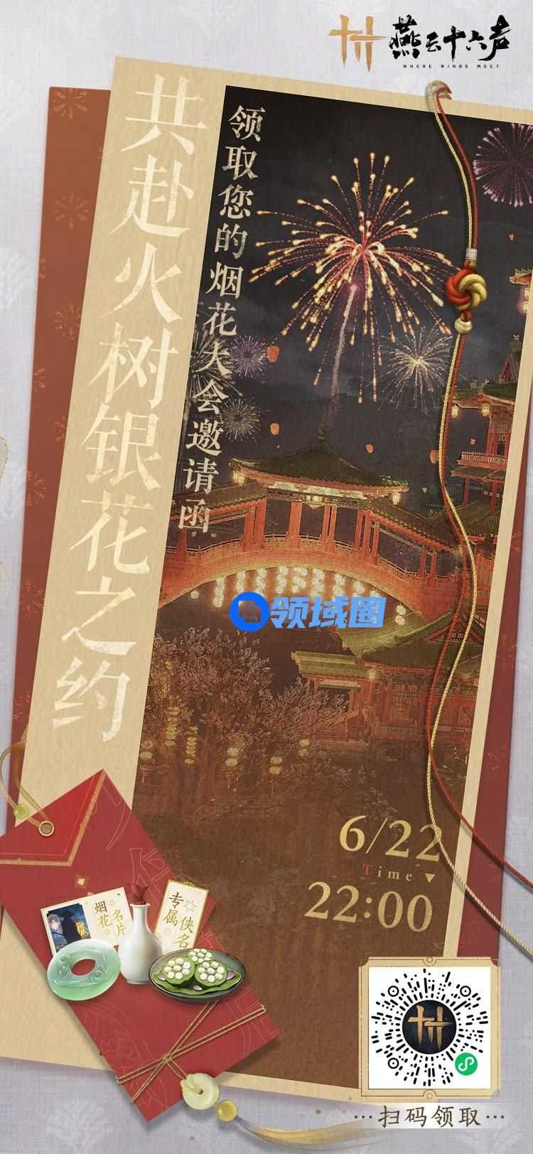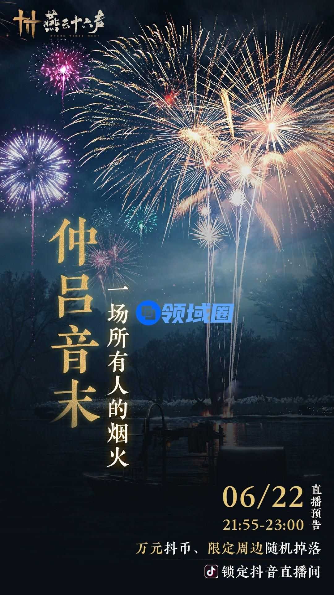 ps:请锁定“燕云十六声官方”抖音直播间,烟花大会专场直播将于6月22日21点55分准时开启,陪所有燕云人共赏这盛景烟火,直播间好礼也将持续掉落。