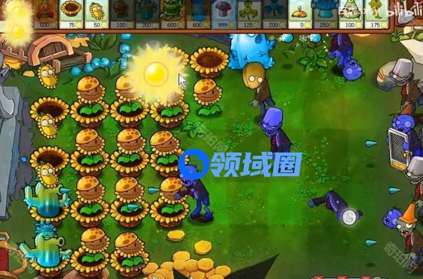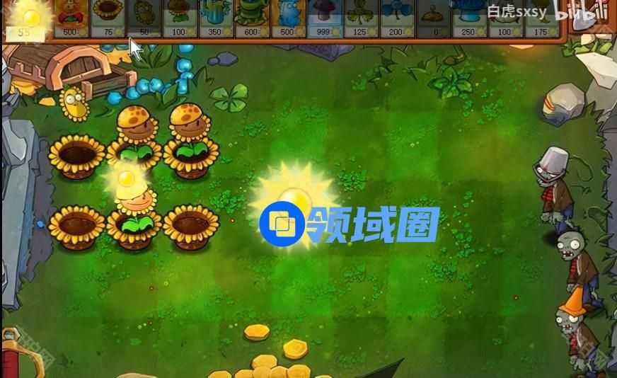 1、在最后一排布置阳光花盆,尽快种植一些向日葵,然后后面花盆上面可以放阳光豆。