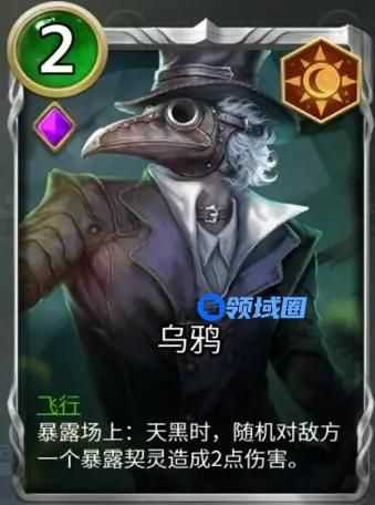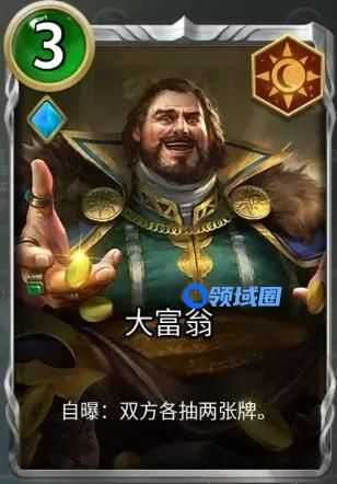 可以说是每套牌必带的契灵之一!乌鸦自带飞行属性拥有一定保命能力,而在天黑后减2信用点有时会有奇效,可破除护甲,秒杀低信用点契灵,使对方唯一暴露牌死亡等等都是不错的交换效果。大富翁是中立补牌神卡,自身3契约值不易被对手翻开,其妙用在于当对手满牌而我方伤亡惨重时,翻开即可使我方抽两张牌缩小和对手的卡差,瞬间逆转我方的场面劣势,是中立翻盘神卡!