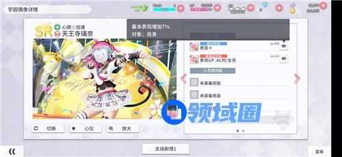 兑换商店获取,特技触发后,全员后面出现的5个音符得分都有加成,在切换到蓝色或者绿色队后,也能保证较高的热度值。个性技能一可提升全队成员的基础表现,个性技能二是50%概率触发后续出现15个音符得分加成10%。