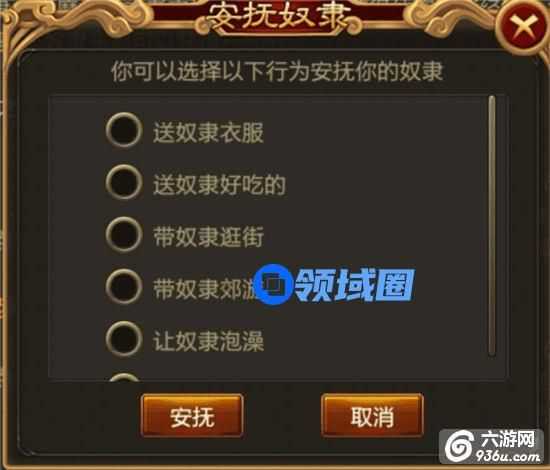 成为别人的奴隶后,可以选择讨好主人,同样会获得技能经验,当然有能力的玩家可以直接反抗,摆脱奴隶身份,没有能力的玩家只好默默的交钱赎身或者等时间到了被释放。