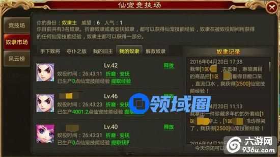 玩家可以选择对抓捕的奴隶进行安抚或者折磨,安抚和折磨都可以获得仙宠技能经验,同时奴隶每天获得的技能经验也会按一定的比例分给奴隶主。